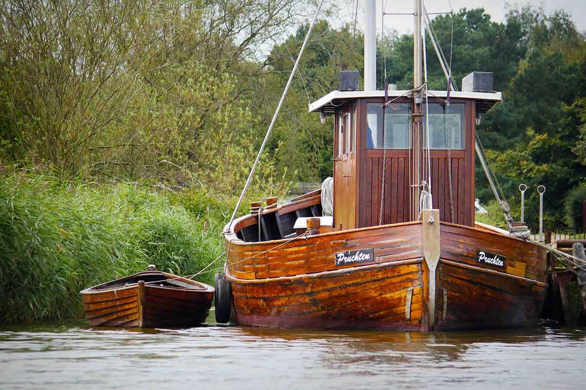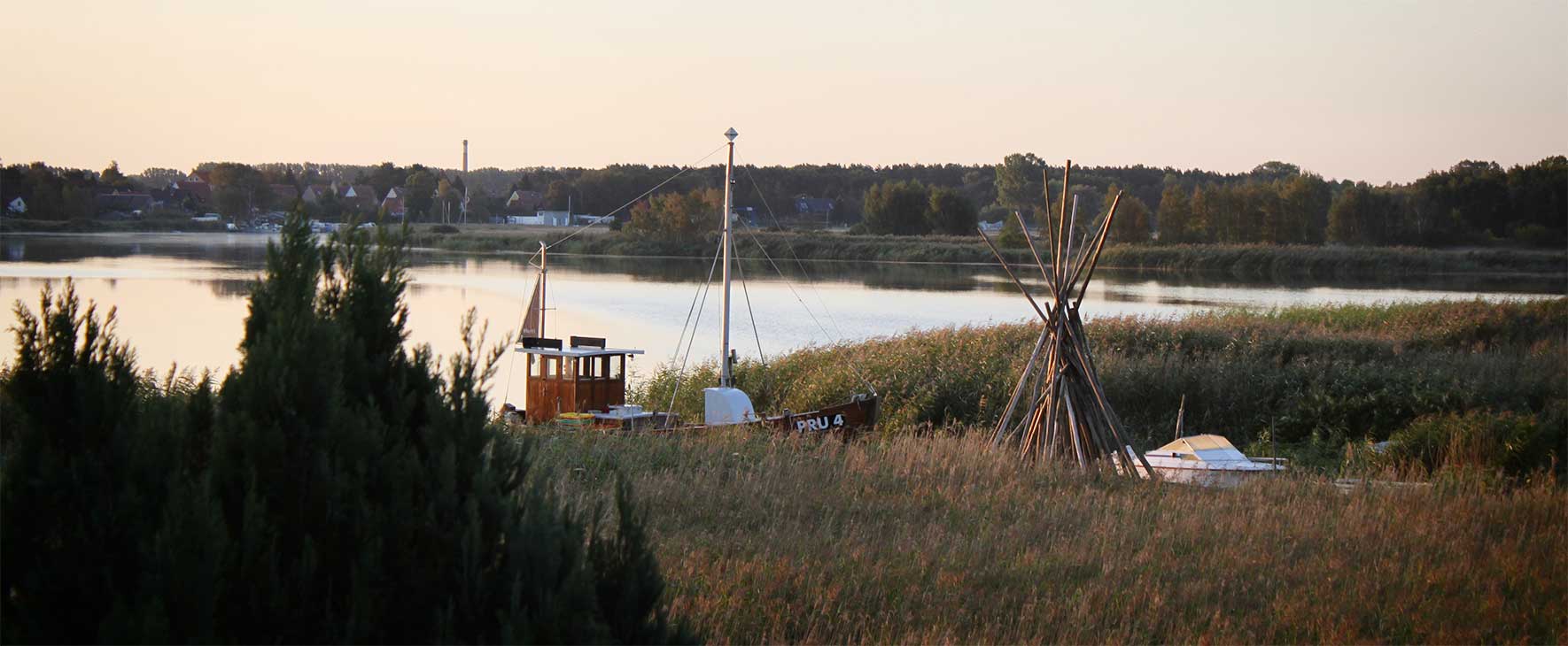 Pruchten ist ein kleines altes Fischerdorf. Der letzte verbliebene Fischer liegt mit seinem Holzkutter direkt auf dem Nachbargrundstück im Hafen…