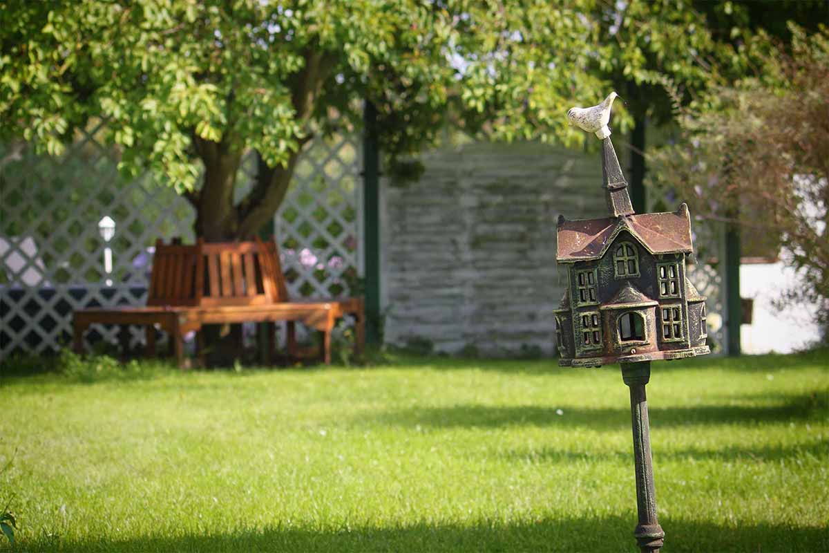 Unmittelbar vor der Tür lädt eine große Terrasse zum Verweilen ein, die den ganzen Tag Sonne bietet. Inmitten des großen Gartens können Sie hier jederzeit das Schilf rauschen hören…
